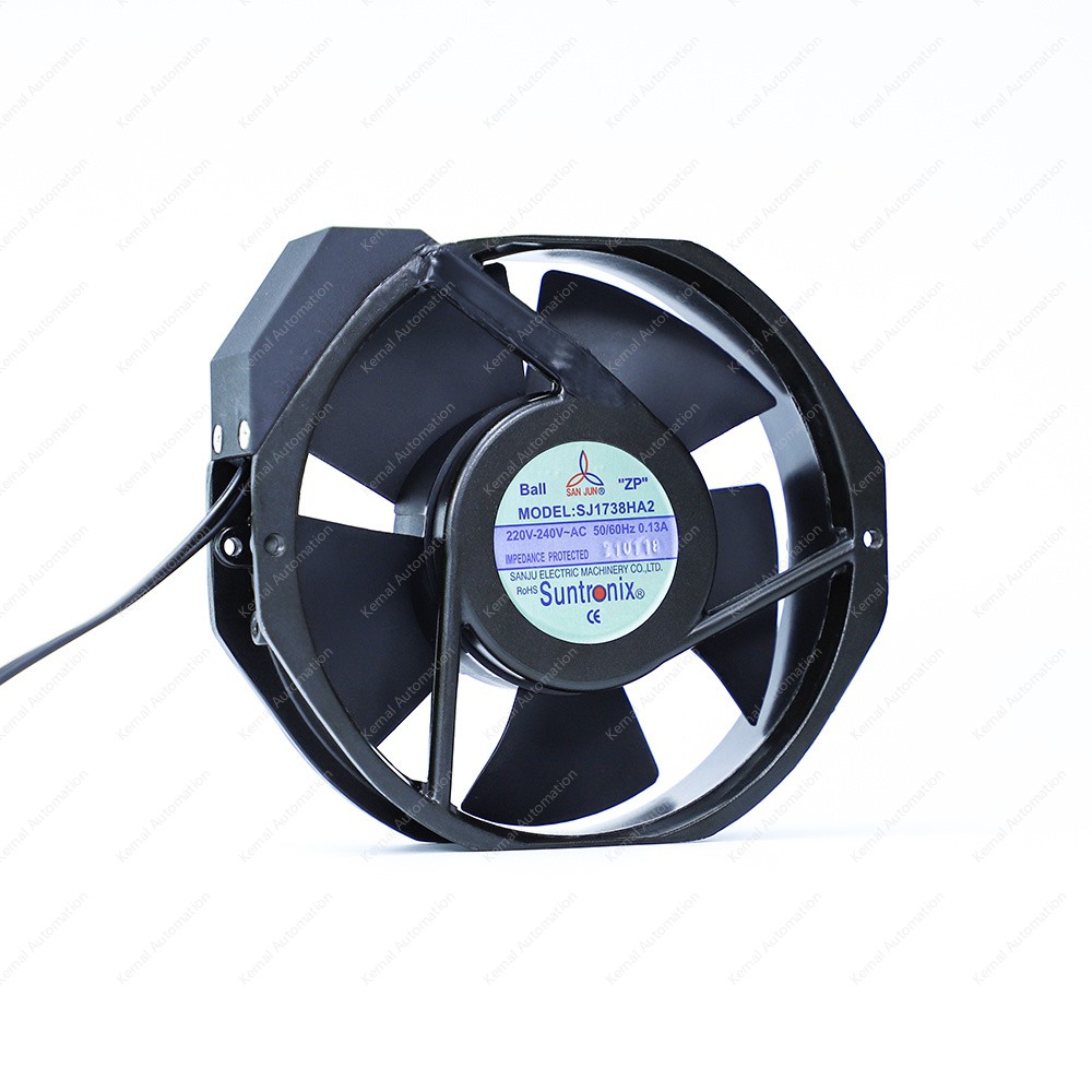 SJ1738HA2BALT SANJU AC Axial Fan 172*150*38mm ,Size 172*150*38mm,Bearing Ball,Voltage(V) 220/240,Frequency(Hz) 50/60,Current(A) 0.15/0.12,Power(W) 35/28,Speed(RPM) 2850/3400,Max Air Flow(CFM) 175/220,Max Static Pressure(Inch-H2O) 0.65/0.75,Noise(dB) 54/58,Weight(g) 760